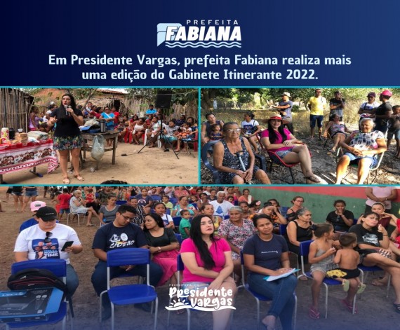 "O Gabinete Itinerante é uma ação de governo do qual temos muito orgulho de participar e de ter criado no município. E com a equipe que compõem a administração municipal, partimos pra dentro de cada comunidade para ouvir os anseios de cada pedacinho do território da nossa cidade. E isso me enche de satisfação, pois para que possamos organizar a gestão pública é necessário ouvirmos a comunidade". Acrescenta sempre a prefeita Fabiana Mendes.