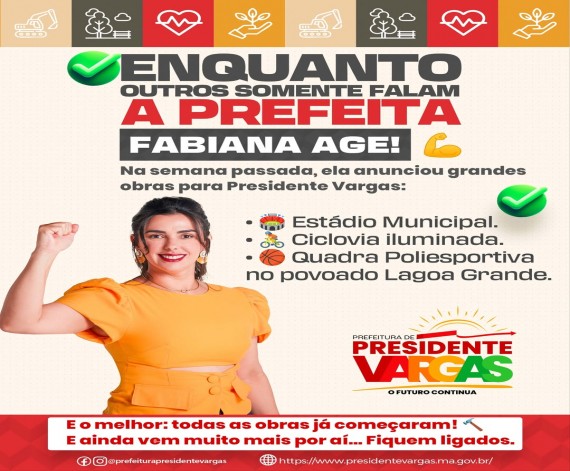 Com o objetivo de revitalizar, promover acessibilidade e o embelezamento da cidade, a Prefeitura Municipal de Presidente Vargas, por meio da Secretaria Municipal de Obras e Infraestrutura, iniciou a obra de construção da Praça Tunico Frazão; que estará localizada na entrada do município.